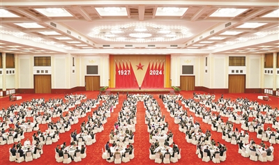 7月31日,中华人民共和国国防部在人民大会堂举行招待会,热烈庆祝中国人民解放军建军97周年。 新华社发(杨嘉汇 摄)