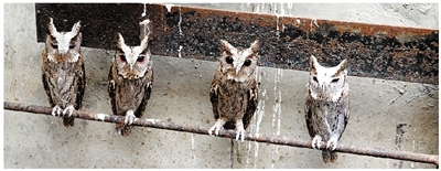 本报讯(通讯员 戴雯琦 记者 俞倩)今年5月,在淳安县一户农户家的烟囱里,发现了一窝猫头鹰幼雏,淳安森林公安将它们送到了杭州动物园进行救护。过了几天,又有两只猫头鹰被送了过来,一起进行救护。