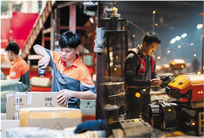 AI杭州畅想·智能设备的革新将进一步提高物流配送的效率。 李庆恒在流水线上工作。