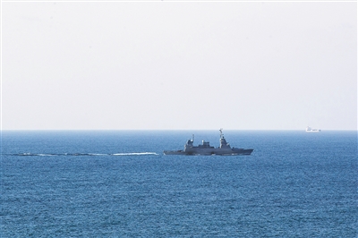 8月18日在以色列北部城市海法海面上拍摄的以军战舰。随着中东地区局势紧张加剧,以色列北部城市海法加紧推进战备。 新华社记者 陈君清 摄