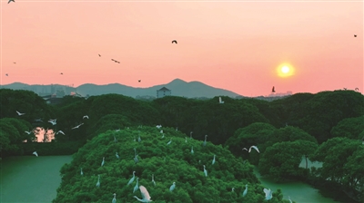 在瓜沥镇大义村,面积约80公顷的雁荡湿地绿树成荫、草木茂盛、鹭鸟群飞。汪爱来父女俩自发守护,让雁荡湿地变成了树繁林茂、处处闻鸟鸣的鸟类栖息地。