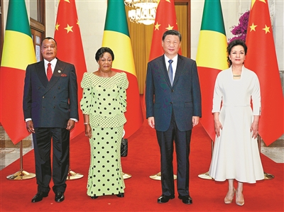 9月6日上午,国家主席习近平在北京人民大会堂同来华出席中非合作论坛北京峰会并进行国事访问的刚果(布)总统萨苏举行会谈。会谈前,习近平和夫人彭丽媛在人民大会堂北大厅为萨苏和夫人安托瓦内特举行欢迎仪式。这是习近平和彭丽媛同萨苏和安托瓦内特合影。新华社记者 李学仁 摄