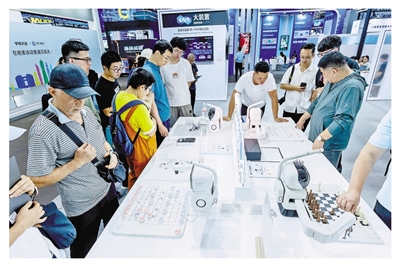 在数贸会展区,商汤科技元萝卜AI下棋机器人系列产品颇为吸睛,尤其是元萝卜继“象棋版”和“围棋版”之后的最新力作——元萝卜国象机器人,吸引了不少参观者的目光。它是全球首款基于机械臂抓取3D立体棋子的国际象棋机器人,首次实现了机器人通过机械爪拾取立体棋子,并拥有人机对弈、人人对弈、记谱复盘等多种功能,是广大国际象棋爱好者和学棋儿童陪练、掌棋的新伙伴。
