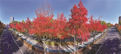 横贯下沙大学城的学林街是一条以“枫香”为主题的景观道路。枫香树叶从10月下旬开始由绿泛黄再变红,11月下旬至12月上旬为最佳观赏期。记者 李忠 摄