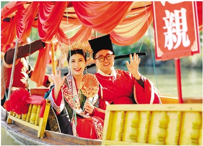 11月30日,“爱满水乡 共富林下”闲林街道第三届“水乡婚礼”民俗文化活动如约而至,6对新人身着典雅的宋式婚服,在青山碧波、青石古道的见证下,举办了一场洋溢着水乡风情的集体婚礼,也为“闲林喜市”的开市增添甜蜜与浪漫。