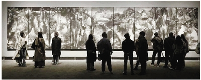 黄骏表示,从2014年至今,他始终深耕国家重大主题性创作领域,同时对水墨本体语言持续进行深入的观照和探索。此次展览筹备历时三年,每一幅作品都凝聚了其对空间、人与自然关系以及历史回应的深刻思考。水墨性不仅是技术层面上的追求,更是精神上的坚守。他始终将技术体验视为一种学习目的,不断挑战自身,提升技艺,以期达到更高的艺术境界。他同时谈到师长、家人、朋友们的支持与鼓励,是其艺术道路上不断前进的力量,激励其创造更多触动人心的作品。