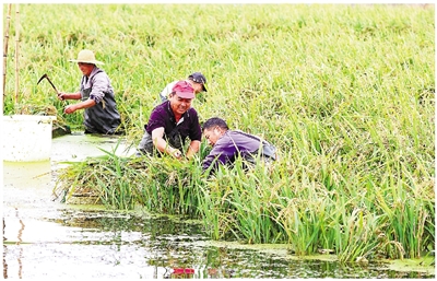 本报讯(记者 沈晓颜 通讯员 沈烨冰 谢伟勇)你见过1.8米高的“巨型”水稻吗?日前,德清县新安镇130余亩“巨型稻”完成收割。“今年是第一次试种,预计亩产在400公斤至500公斤。”新安镇舍北村稻虾共生试验田项目负责人孙水根说。