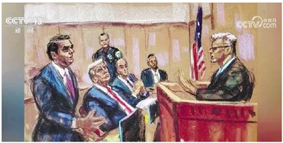 特朗普“封口费”案的法庭画像(资料照片)。 据央视
