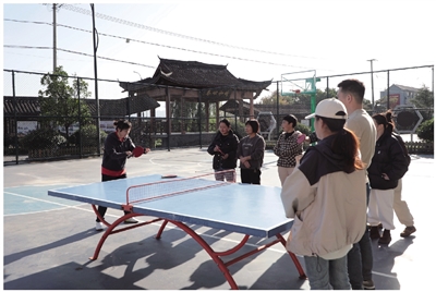 “来,像这样,手指放松但又要有力地握住拍柄;对,这个小朋友就做的很好。”王小萍教练温柔又带着鼓励的声音在场地里回荡。随着不断地重复练习,孩子们渐渐掌握了诀窍,像活泼的精灵在球台周围穿梭,欢乐的笑声在富阳区新桐乡江洲村新时代文明实践站回响。