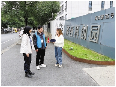 余杭区闲林街道企业社区监察工作联络站成员走访工业园区,了解企业经营状况。