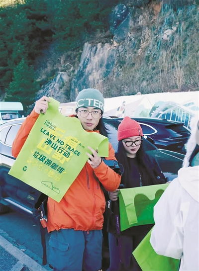 从江苏昆山骑着摩托车飞驰300多公里来太子尖“净山”的“摩友”胡建军就是其中之一。“我在小红书上刷到了太子尖日出、云海、雾凇非常壮观,还推出了‘垃圾换咖啡’行动,今天特地带着女朋友来打卡,顺便捡袋垃圾去换杯咖啡。通过自己的举手之劳参与公益行动,换杯咖啡捧在手里感觉格外香!”胡建军说。