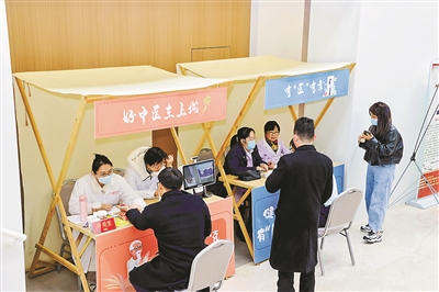 会场外,“好中医在上城、皓齿、明眸、清肺、减重、医靠、健骨”七大健康主题展台,吸引不少市民现场体验中医面诊,进行视力检查,咨询戒烟、减重及慢性病管理等。