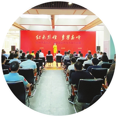 市直机关、市属国企优秀书画作品亮相杭州图书馆“艺痕”展厅。