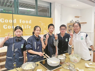 翠苑中学学生正在用豆渣做饼。翠苑中学供图