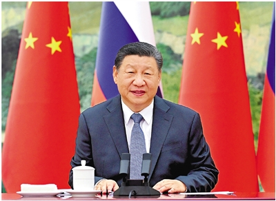 习近平强调,新的一年,我愿同总统先生一道,继续引领中俄关系登高望远,以中俄关系的稳定性和坚韧性应对外部环境的不确定性,共同促进两国发展振兴,维护国际公平正义。