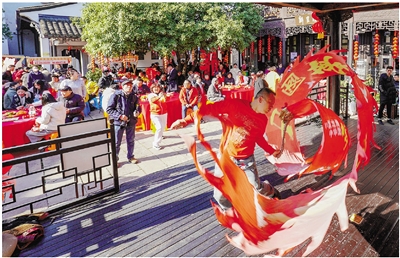近日,新中国第一个居委会诞生地——杭州上城区紫阳街道上羊市街社区拉开了“第九届上羊春晚”的大幕,舞绸龙、斗笠舞、葫芦丝、街舞串烧等节目在邻里小舞台轮番上演,剪窗花、漆灯笼、画糖人、雕版印刷等项目在非遗展台展示传承,让居民们在传统与时尚交融的春晚现场,找到了旧时的春节记忆,感受着当今的喜乐年华。