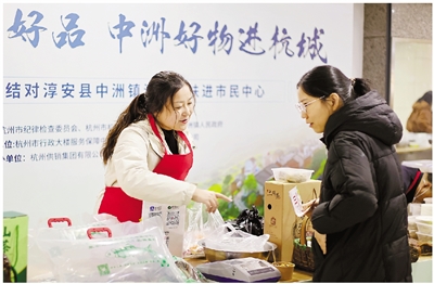 杜涵琳(左)组织开展“中洲好物进杭城”活动。