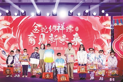 杭州市儿童福利院(以下简称“市儿福院”)张灯结彩,体育馆内,儿福“爸妈”与孩子们齐聚一堂,“金蛇纳祥瑞,育见新未来”2025年新春“年夜饭”活动就在这里温馨启幕。