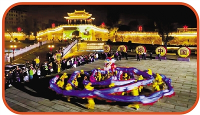 正月初六晚,在富阳新登古城,随着激昂的锣鼓声,一条长104米的“官塘青龙”在明清古城墙下腾跃起舞,绸缎龙身蜿蜒盘旋,青鳞映照的每一寸光斑皆是历史的吉光片羽。