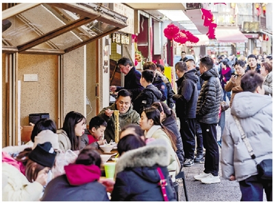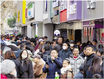 春节假期,杭州各个商业街区、历史文化街区人头攒动。记者 步恩撒 摄