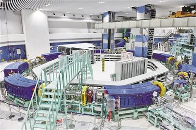 杭州半山南麓,一幢新起大楼的地下二层,竟“藏”着一个直径50多米的“足球场”。场内,蓝色轨道环绕,像乐园中的过山车。在“过山车”中穿梭的重离子束,可以加速“飞”起来,达到光速的70%左右(约为每秒21万公里)后,就有了“立体定向爆破”肿瘤患者癌细胞的能力。