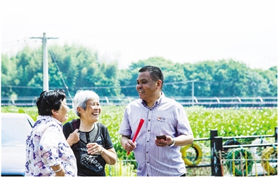 这些年,我们在全村实施道路硬化和道路两边的绿化,完成了300多亩农田水系改造,新建了村办公楼、乡风民俗苑、文化礼堂、村老年活动室、阅览室和娱乐休闲健身场地,还搞起了桑葚采摘基地和“院士米”水稻种植基地,村民们都非常支持,积极参与。