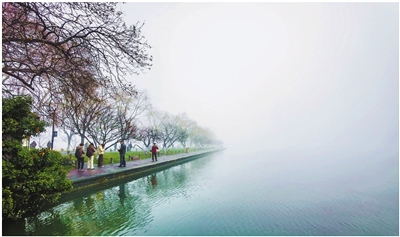雾气渐散,西湖恢复了往日的轮廓。一群游学的学生端坐在古樟树下,和着梅香,听老师讲林和靖的梅花诗,“疏影横斜水清浅,暗香浮动月黄昏”……