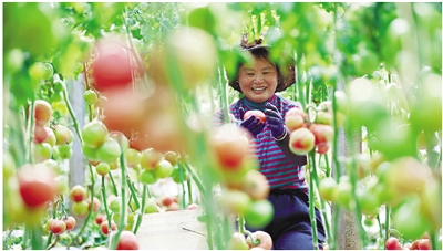 春回大地,万物复苏,人们在田野上忙着春耕备耕,播种希望。图为3月8日,山东省临沂市郯城县陵坡村的村民在大棚内采摘西红柿。 新华社发(张春雷 摄)