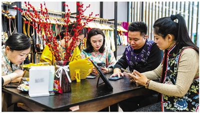 施家豪的兴奋源于AI工具确实帮他“省了不少麻烦”。以前,客户问起某几款衣服的价格,店员需要打开电脑软件,一次次人工录入款号才能查询。“如果客人回过头又问起之前某款衣服的信息,就得重新操作一遍,有点麻烦。”施家豪说,“但是用AI工具就不用担心这个问题,因为手机上会形成一个聊天记录。”
