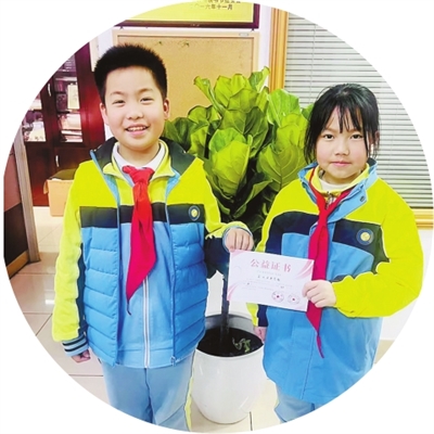 随后到来的还有杭州市崇文未来学校的学生代表吕行、王睿彤,他们替全校861位同学带来了861元钱,也是在爱心跳蚤市场上的义卖所得。