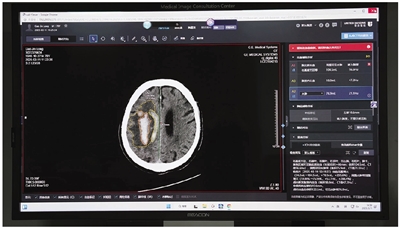 “这位老年患者有脑出血症状,AI工具接收扫描影像后,很快辨别、分析出了患者脑出血的位置,并计算了出血量。”朱大荣说,即便是经验丰富的医生,根据扫描影像出具影像报告往往也需要15至30分钟,部分病变体积还得靠估算得出。而通过AI工具,几分钟便可以得到一整套精准的数据。