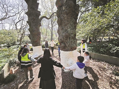 本报讯(通讯员 杨尚其 记者 俞倩)近日,杭州西湖风景名胜区灵隐管理处在飞来峰景区举办了“飞来寻春‘拥抱灵隐一棵树,守护自然绿意浓’”古树保护活动。