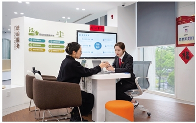 法治服务专区工作人员接待企业代表。
