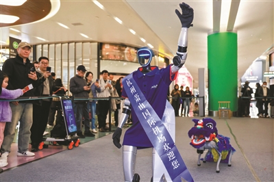 当天上午9时,杭州机场T4国内出发安检后中庭响起舒缓的音乐。机器人在人群中自如穿梭,并与旅客友好握手,引得旅客纷纷驻足、与之互动。一同亮相的还有数只扮成舞狮造型的机器狗,伴随着激昂的锣鼓声,它们在舞台中央灵活地完成“采青”“翻腾”等经典舞狮动作,将千年传统文化与仿生科技完美融合,赢得旅客阵阵惊叹。