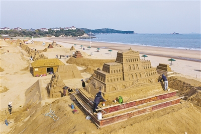 本届沙雕节以“音乐南沙”为主题,以世界经典音乐和流行文化音乐为创作主题,将于五月前完工。新华社记者 徐昱 摄