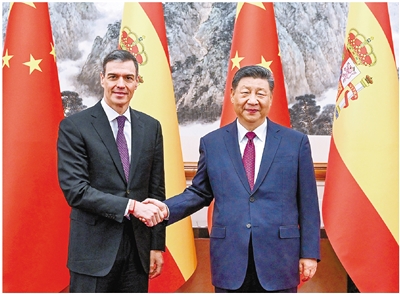 习近平强调,风物长宜放眼量。中西友好是两国人民基于传统友谊、现实需要、长远利益作出的正确抉择。双方要继续巩固相互支持的政治基础,相互信赖、相互尊重,在涉及彼此核心利益和重大关切问题上相互支持,特别是支持彼此维护主权和领土完整。中国14亿多人口的消费升级需求和产业转型潜力,将为世界经济提供强劲动力。中方愿同西班牙用好互利互补的合作优势,发挥好经贸、科技合作机制作用,深挖新能源、高技术制造业、智慧城市等领域合作潜力,打造更多互利合作成果。要赓续相知相亲的友好传统,传承好两国人民深厚的“奥运情”、“熊猫情”,打造“欢乐春节”等新的“金字招牌”,扩大互派留学生规模,让更多青年成为中西友好的生力军。中西都是支持多边主义和开放合作的积极力量,双方要推动构建公正合理的全球治理体系,维护世界和平和安全,促进共同发展繁荣。