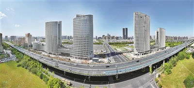 近日,位于杭州高新区(滨江)彩虹立交西北侧的滨江区第二工业综合体项目建设进入收尾阶段,施工单位正在进行室外绿化及公共配套区域装修,力争今年上半年通过竣工验收。“工业综合体”与传统工业厂房模式不同,是一种集聚了企业生产、办公、研发等多种运营形态的都市型工业楼宇模式。这种“竖起来的工厂”不仅能节省大量建设用地,更有利于产业生态的集成和产业要素的集聚,是产业转型升级的重要载体。滨江区第二工业综合体的用地面积约5.08万平方米,5幢现代感十足的主体建筑由东向西一字排开,错落有致。这片现代化的“摩天工厂”建成投用后,将成为集智慧制造、智慧研发、智慧互联于一体的产业基地。记者 李忠 摄