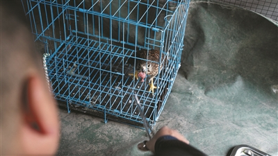 今年年初,郑建江救助了一只红隼。红隼个头不大,却是猛禽,可在志愿者们的照料下成了“萌物”。郑建江将肉剪成小块,喂到红隼嘴里,小家伙眼睛滴溜溜的,单脚蹦跶着伸长脖子吞咽。 红隼的左脚骨折后一直没恢复好,志愿者们考虑等它完全恢复再放生野外。“一般救助结束后会马上放生,怕它们会产生依赖。”郑建江说,但对于眼前的小家伙,他不放心,生怕放生后它存活不了。