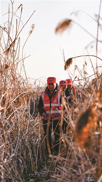 眼下是观赏、欢送冬候鸟的最后“窗口期”,郑建江正和志愿者们开展日常保护行动。自从公益服务范畴从保护湿地鸟类升级到救助湿地里的野生动物,日常渔巡也成了他们工作的一部分,有时候凌晨两三点就要出动。 杭州钱塘大湾区湿地公园的北区滩涂有很长一段时间被完整保护了起来,任何人不得进入,鸟群因此有了自由自在的栖息地。清理外围捕鸟网,是志愿者们现在最忙碌的事。郑建江和几位志愿者走进一处芦苇荡,在各个隐秘角落检查有无张网情况。“现在大家的素质都高了。”志愿者老蔡说,“越来越多的鸟儿选择在这里安家落户。”