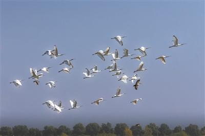 湿地内的一片树林,如今已是白鹭、灰鹭、牛背鹭等鹭鸟的栖息天堂。观鸟爱好者们在多年拍摄中发现,每年3月至5月的繁殖季,平时散布在江滩草丛里的各种鹭鸟都会集聚到这里,在树上筑巢产卵、哺育后代。近10年中,每年集聚于此的鹭鸟数量已从百余只增加到了上千只。 去年9月,钱塘大湾区湿地公园正式对外开放,迅速成了杭州人的“观鸟胜地”。 东方白鹳、白头鹤、黑嘴鸥、黑脸琵鹭、卷羽鹈鹕等珍稀鸟类接连现身,与潮起潮落、芦苇摇风一起,成为湿地这块巨幅画布上的灵动笔意,将“天地造化”一词再次具象化。 该图片由受访者提供