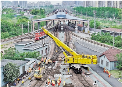 昨天上午,铁路杭州乔司编组站调用大型机械并组织120多名作业人员,历时4小时,对站内已使用10多年的重点设备——重逾20吨的驼峰一部位J1车辆缓行器道床进行改换施工,通过优化设备性能,确保货物运输安全。