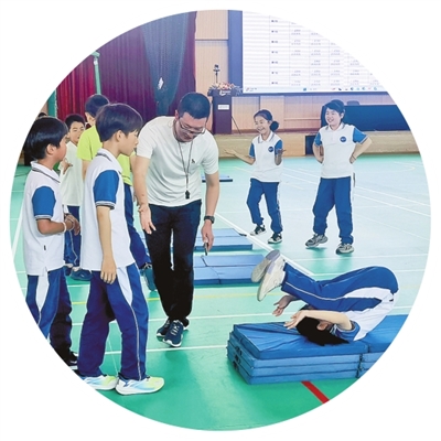 去年,来自采荷中学、卖鱼桥小学、高新实验学校等杭城22所中小学的骨干体育老师出访日本,西湖小学教育集团总校长张冠军是其中一员,他带回来一个40多分钟的视频,画面中师生互动的场景令大家深受触动,“这是日本小学体育课的课堂实录,内容也是练习前滚翻。学生互相讨论交流,思考动作怎么做,合作完成一个动作;老师更多的是辅助,甚至是‘靠边站’。”