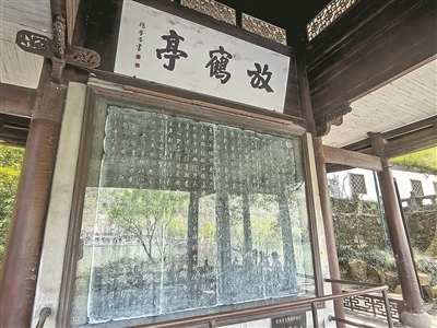 元代杭人陈子安见孤山林逋故地有梅却无鹤影,就特送一鹤放养于此,并在林逋故居旁建放鹤亭。康熙第三次南巡时,来到此地,亲题“放鹤”二字,并临摹明朝董其昌书写南朝诗人鲍照的《舞鹤赋》,刻碑置于放鹤亭内。该亭经历代多次重修,如今仍为孤山地标之一。