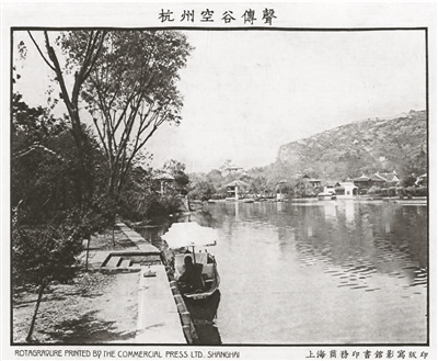 据说最早描述孤山“空谷传声”景象的,是“革命诗僧”苏曼殊发表于1916年《新青年》杂志上的一篇爱情小说《碎簪记》,其中讲有位“碧眼”外国女郎,在放鹤亭游玩,忽然放声高歌了一句:“Love is enough.Why should we ask for more?(有爱足矣,何须多求)”,唱完,即听到空谷中传来一句一模一样的回音。此时,一青年高声回了一句:“O!You kid!Sorrow is the depth of love.(哦!姑娘!爱至深即成忧)”,空谷中又清晰地重复了一遍,游人均大笑。