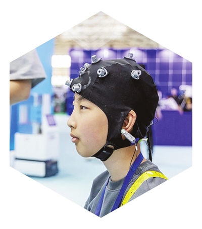 “它很灵敏的,我都不需要动手,只要用脑子想就可以让船动起来,还能控制开船的速度。”余杭区海辰小学的六年级学生陈昊泽戴着脑电采集帽体验了用意识控制机器(图1),他惊奇地发现,眼前这个形似“加大版IPAD”的机器人能读懂他的“想法”。