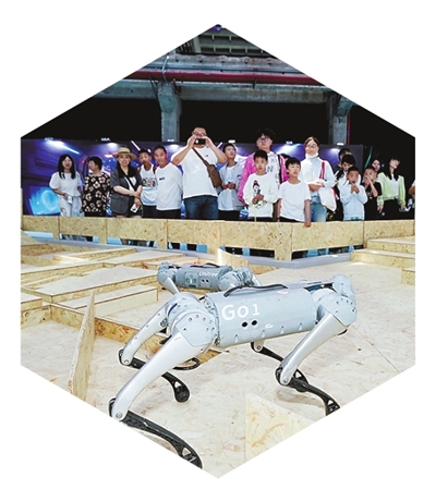 在“机械伙伴”展区,最近超火的“钢铁侠”——身高1.27米的宇树科技人形机器人G1,正在现场迎接大伙儿的到来(图5);宇树科技、云深处的四足机器狗及小米机器狗“铁蛋”组成了“AI宠物军团”,展开同场竞技,这些特种服务机器人具备高难度动作能力,最能吸引年轻人的眼球(图6)。