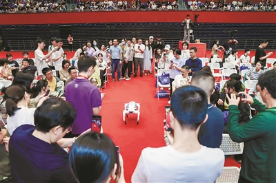本报讯(记者 王泽英)舞台上,音乐一响,6只白灰色机器狗齐刷刷登场,随着节拍灵活摇摆、翻滚,最前排的观众惊喜地伸出手,与它们“握手”——一段“热舞”逗得全场欢笑连连。