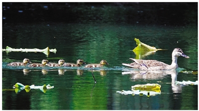 昨日杭州入夏。在孤山北麓、曲院风荷、茅家埠一带的西湖水域里,一窝窝毛茸茸的小鸳鸯、小野鸭、小黑水鸡等正陆续孵化出壳,稍稍长大后,就在妈妈看护下入水游弋,觅食嬉戏。它们的到来,为生态西湖又添几分生命活力和自然野趣。记者 李忠 摄