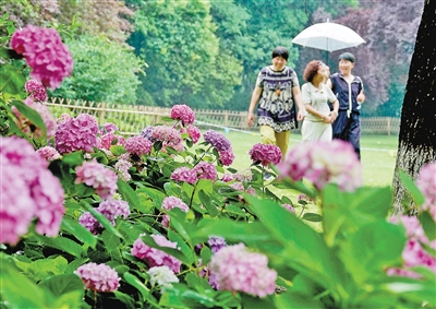 5月16日,上城区城东公园里数十个品种的绣球花渐次绽放,该园的第六届绣球花展也如约而至,吸引不少市民前来打卡这场初夏时节的浪漫花事。