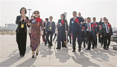 5月16日,第七次全国自强模范暨助残先进表彰大会在北京召开。图为出席大会的代表们步入会场。 新华社记者 才扬 摄